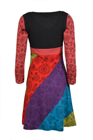Women's Long Sleeve Cotton Dress Multicolored Print Evening Dress