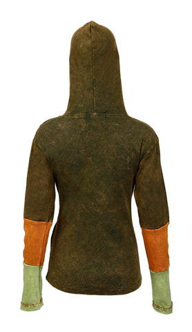 Tattopani Womens Cardigan with and attach hood. Stone Wash and Made of Cotton. Handmade Embroidery Unique and different in style.