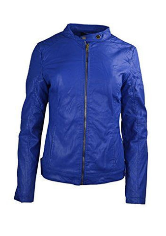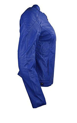 Womens Faux Leather Plain Zip Up Ladies Jacket with Stitching Detail
