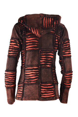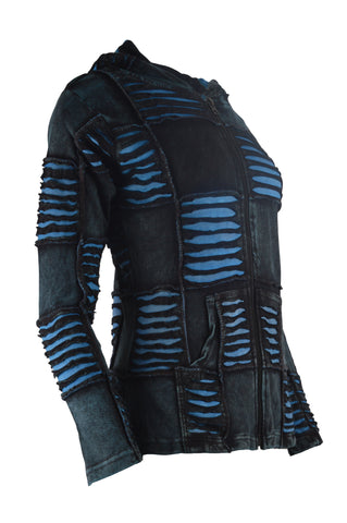 Women's Full Sleeved Multicolored Unique Patched Jacket Tattopani Women's Cardigan with and attach hood. Stone Wash and Made of Cotton .Hand made Embroidery Unique and different in style.