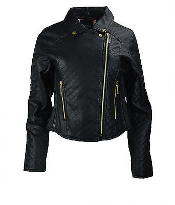 Women and rsquos Black Faux Leather Quilted Zip Up Ladies Jacket with Stitching Detail