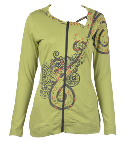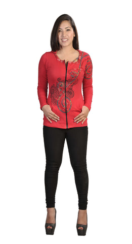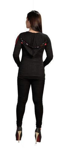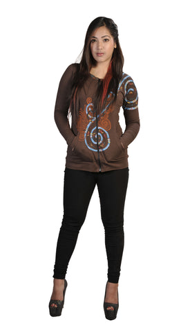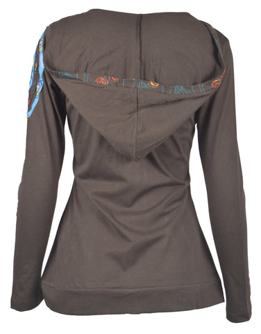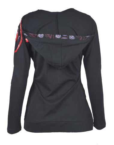 Ladies Slim Fit Long Sleeve Sinker Jacket with Front Embroidery. Beautiful embroidery, thinlight weight outwear with attached hood. Pair them with Jeans, skirt or legging; and get to go for, perfect Autumn walk, casual gathering event. For all seasons!!!