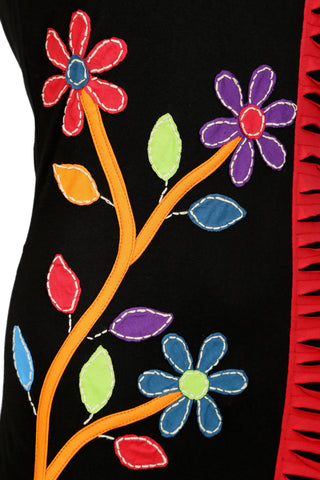 Ladies sleeveless black & red dress with colorful flower embroidery and razor cut design. Pair up with the flats, heels or boots. Perfect for the beach day or as an evening wear. Enhance the style just simply by adding different accessories with this dress. Style it as you prefer!!!