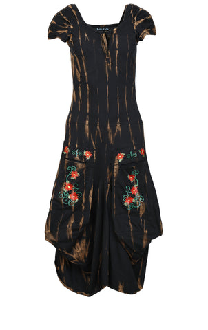 Ladies Short Sleeved Calf Length Dress with Flower Embroidery Printed on Pockets in Tie Dye Patterns. Suitable for all season.Handmade Embroidery and Stitch. Pair up with the flats, heels or boots. Perfect for the beach day or as an evening wear. Wear it with coats or jackets in winter. Enhance the style just simply by adding different accessories with this dress. Style it as you prefer!!