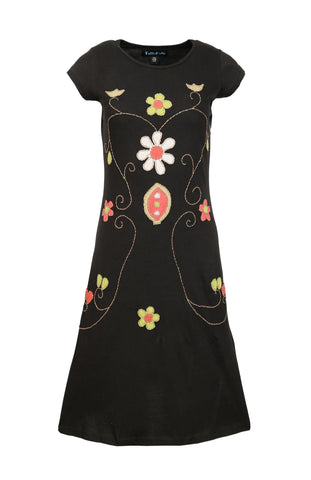 Ladies colorful, Short Sleeve dress with floral patch & print. Pair up with the flats, heels or boots. Perfect for the beach day or as an evening wear. Enhance the style just simply by adding different accessories with this dress. Style it as you prefer!!