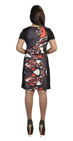 Women's short sleeved dress with multicolored pattern and rhinestone. Suitable for all season. Evening dress summer dress . Pair up with high heels or flat shoes. Style as you prefer.