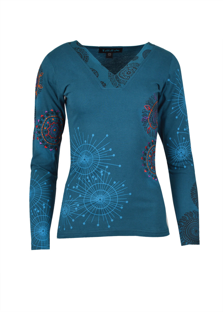 Tattopani women's long sleeve 100% cotton tops. All over floral print round neck t-shirt. Soft and comfortable to wear.