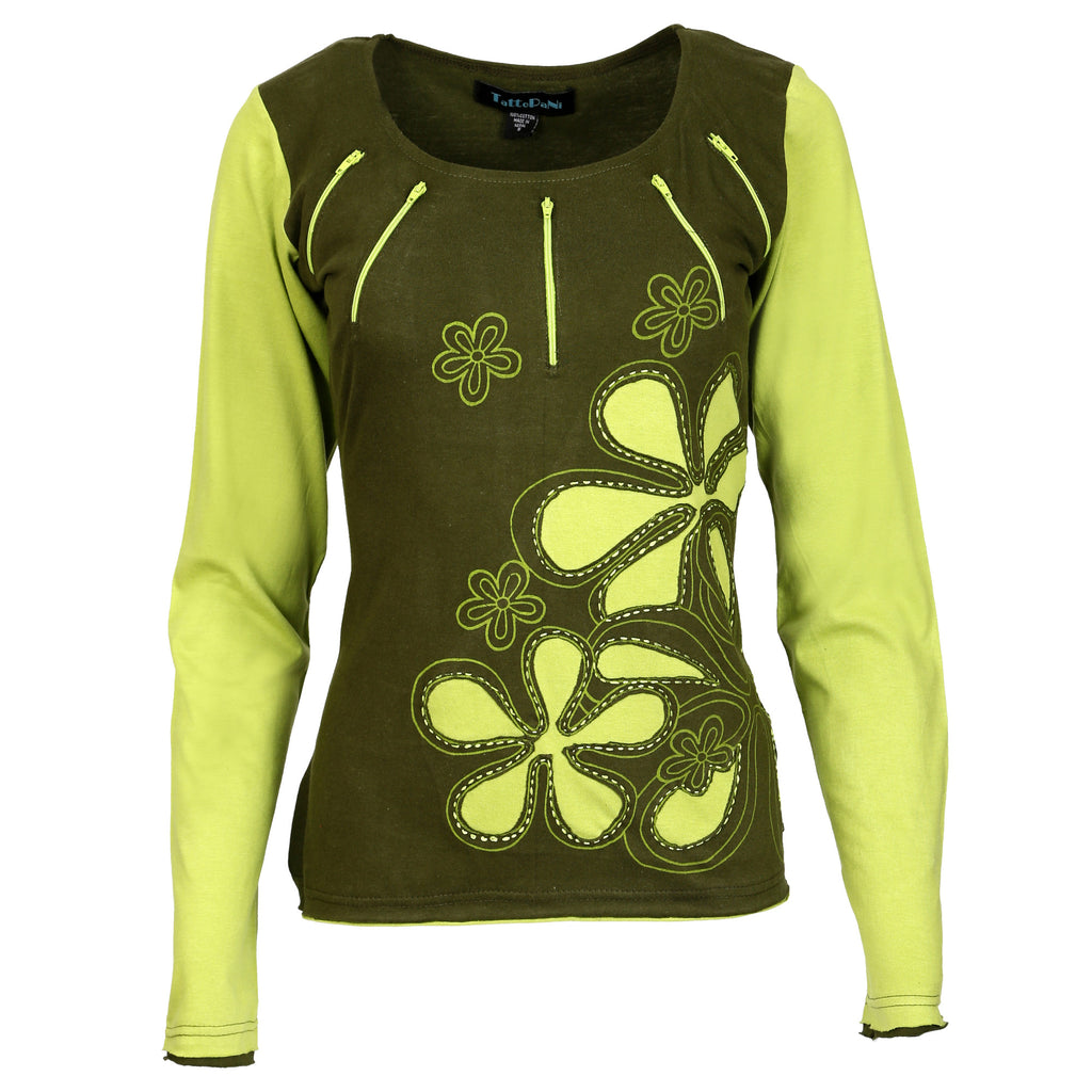 Women Full Sleeved Tops with flower Embroidery and patch. Suitable for All Season, Comfortable and Soft Cotton Material.