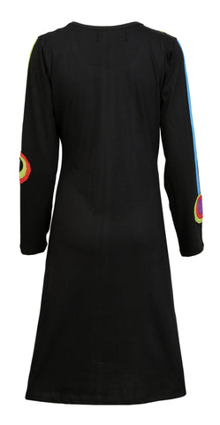 ladies-long-sleeved-dress-with-colorful-circle-and-patch-design